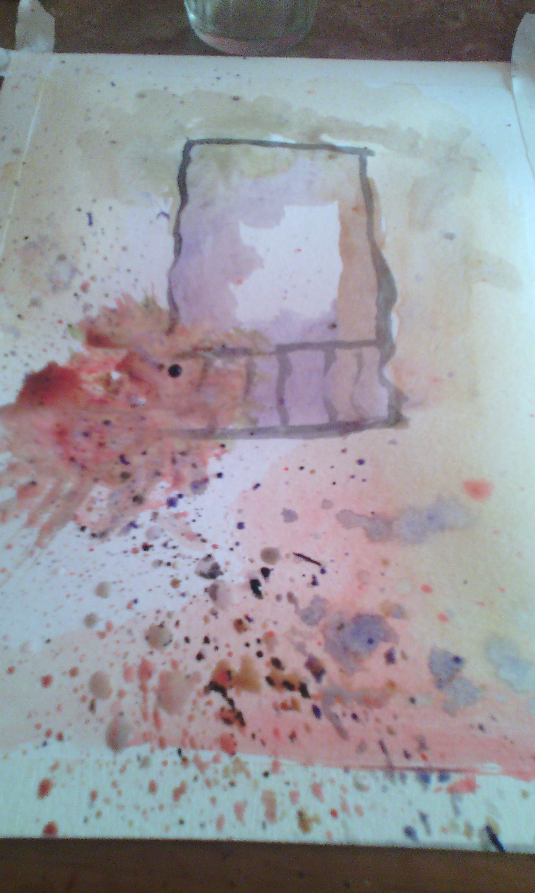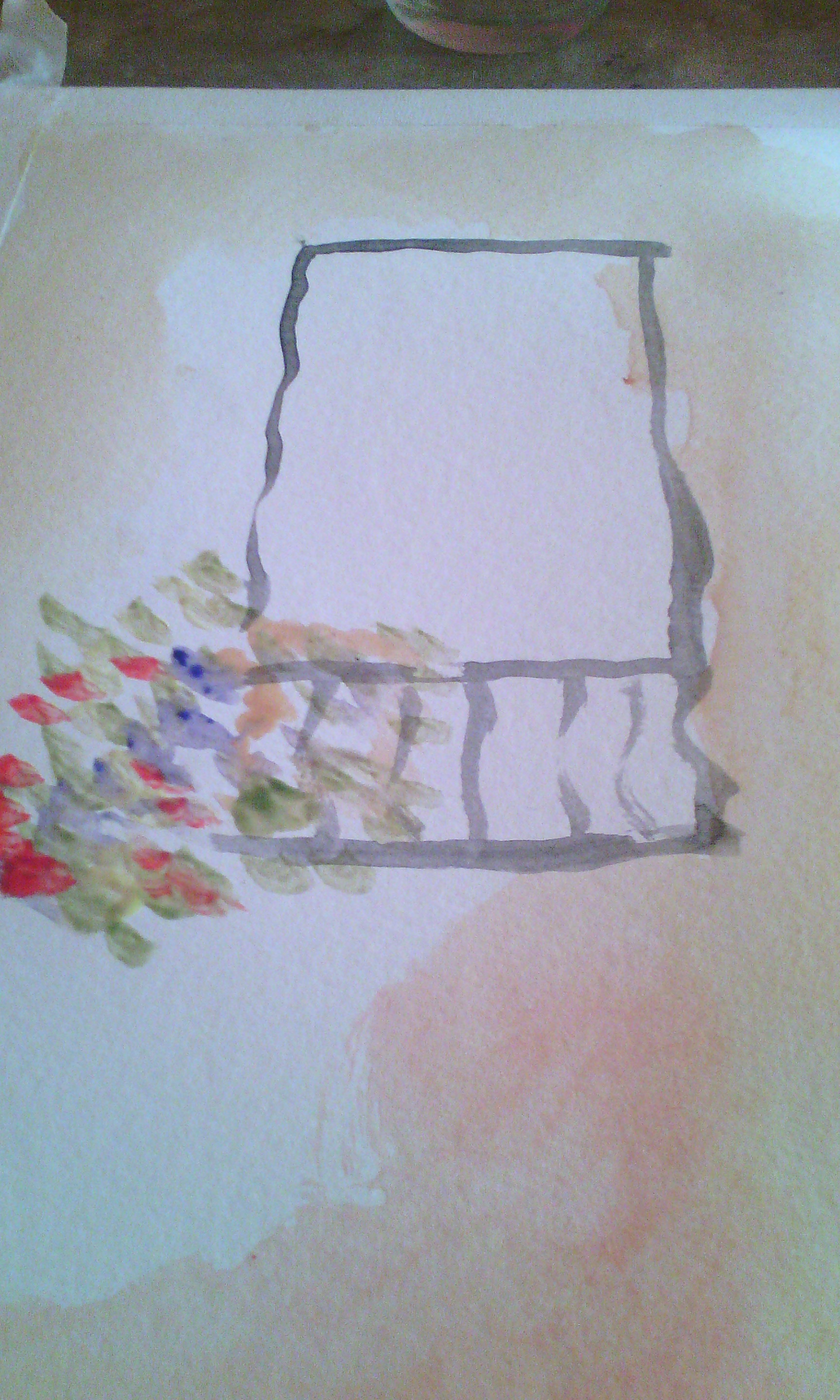 In this work, you start by painting a window with a very thin paintbrush. I used black. Just draw the basic lines of the window.