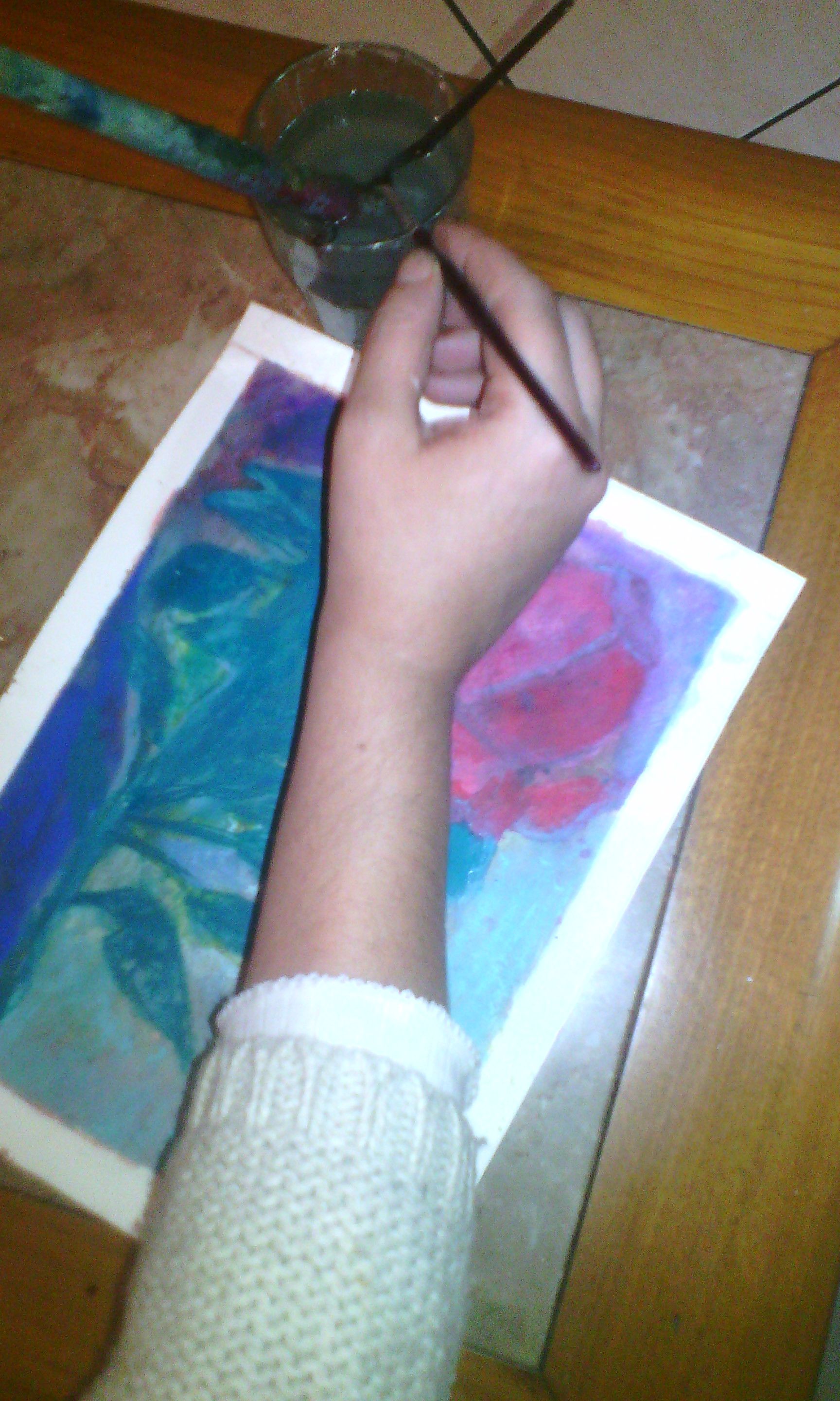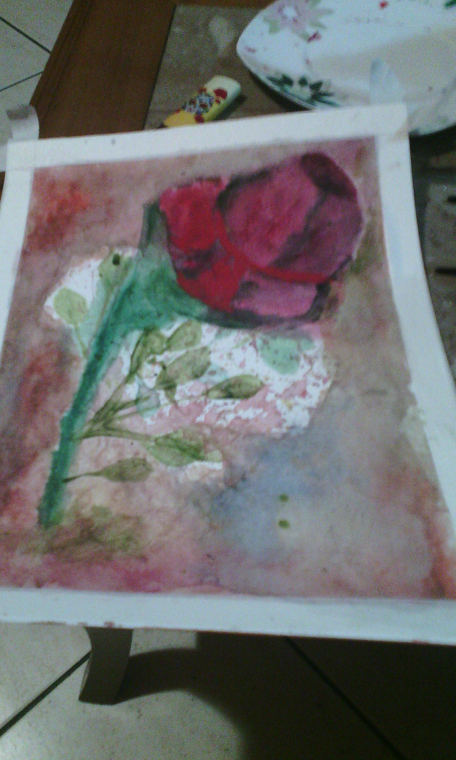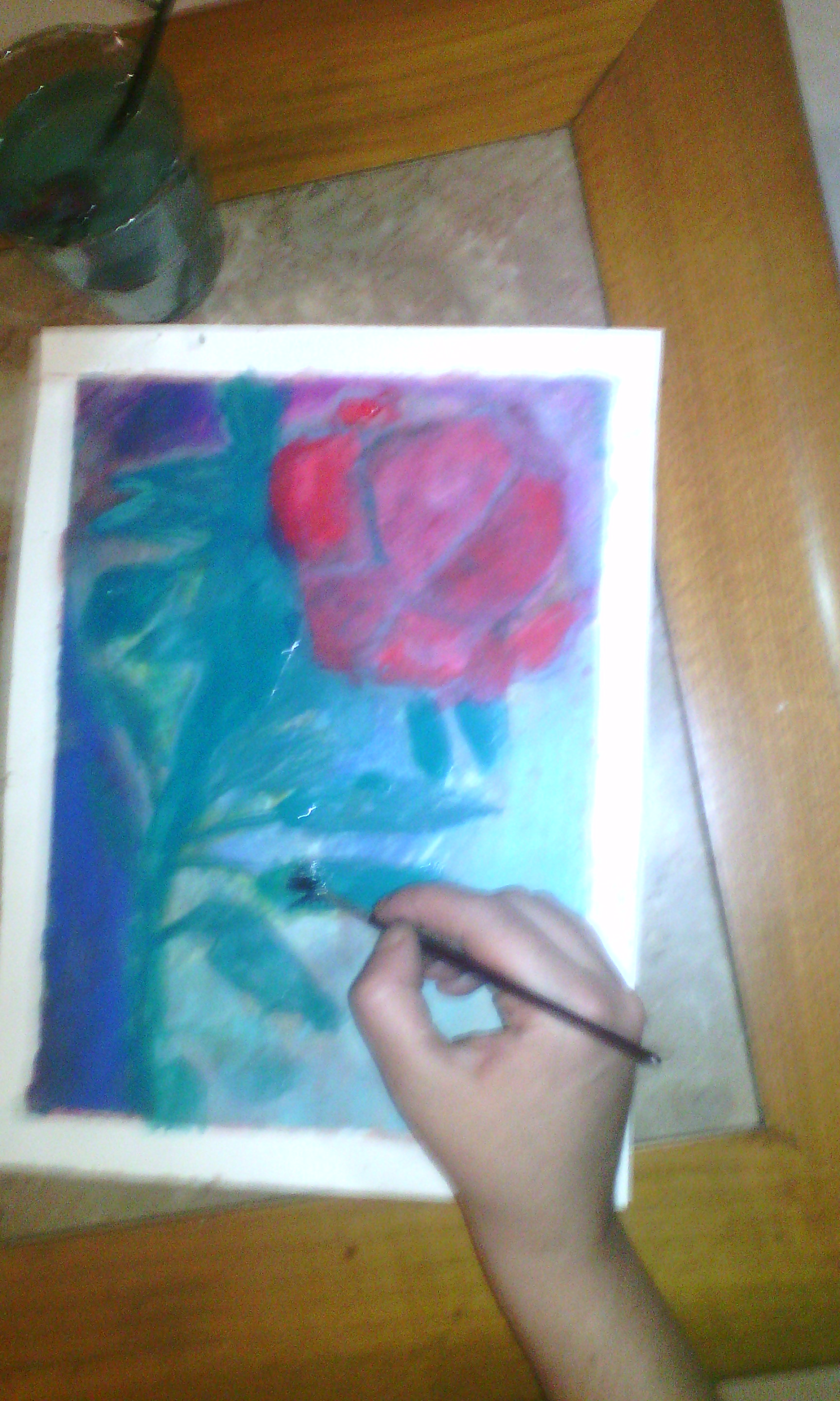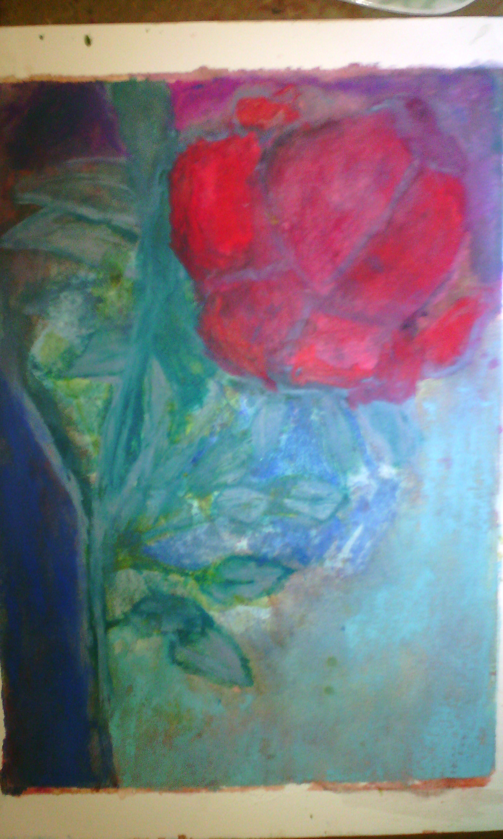 I just covered the entire surface with watercolour pastel, which gave this rose.