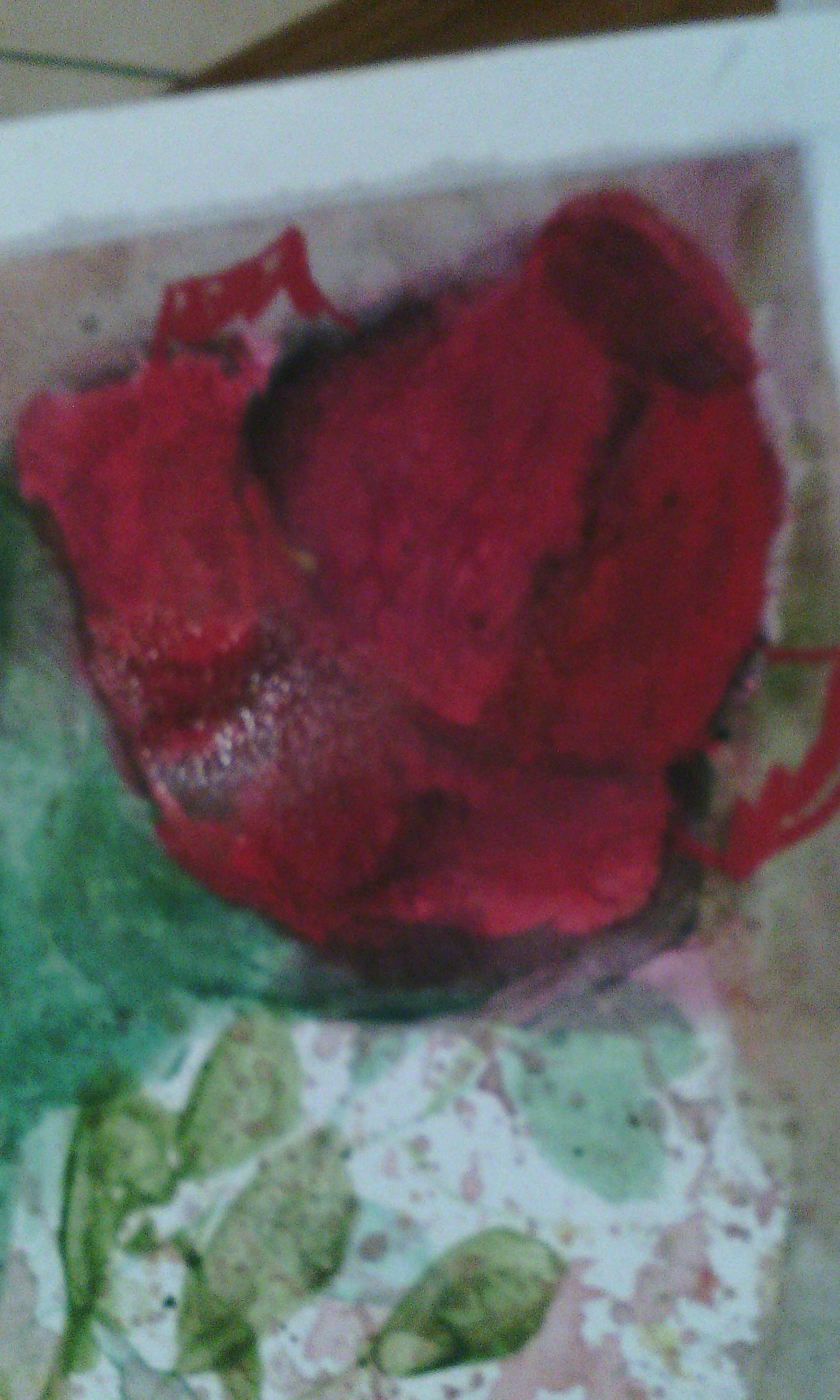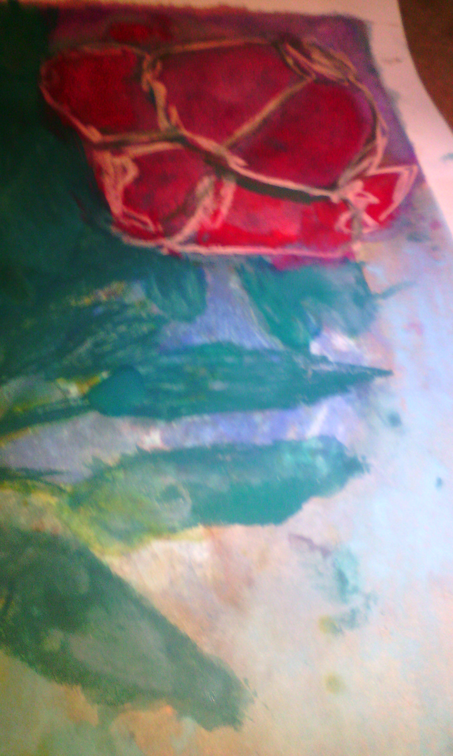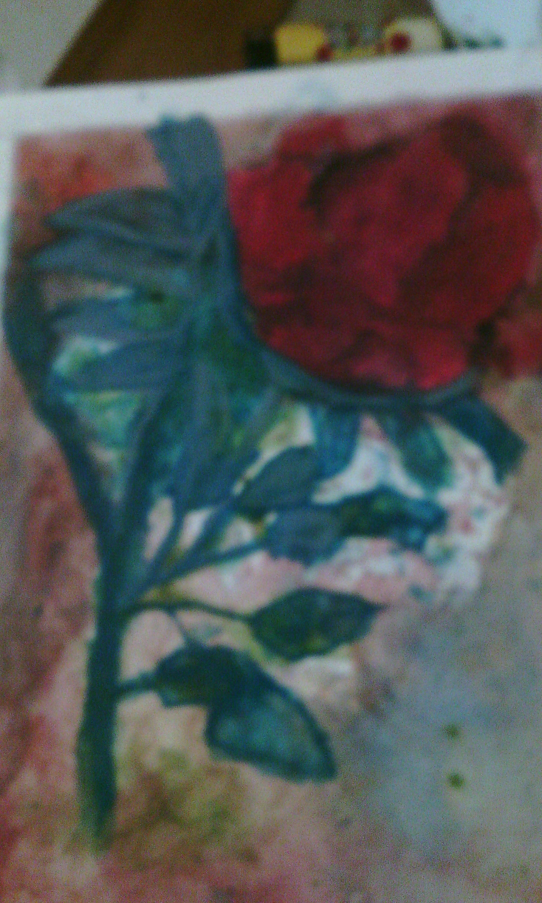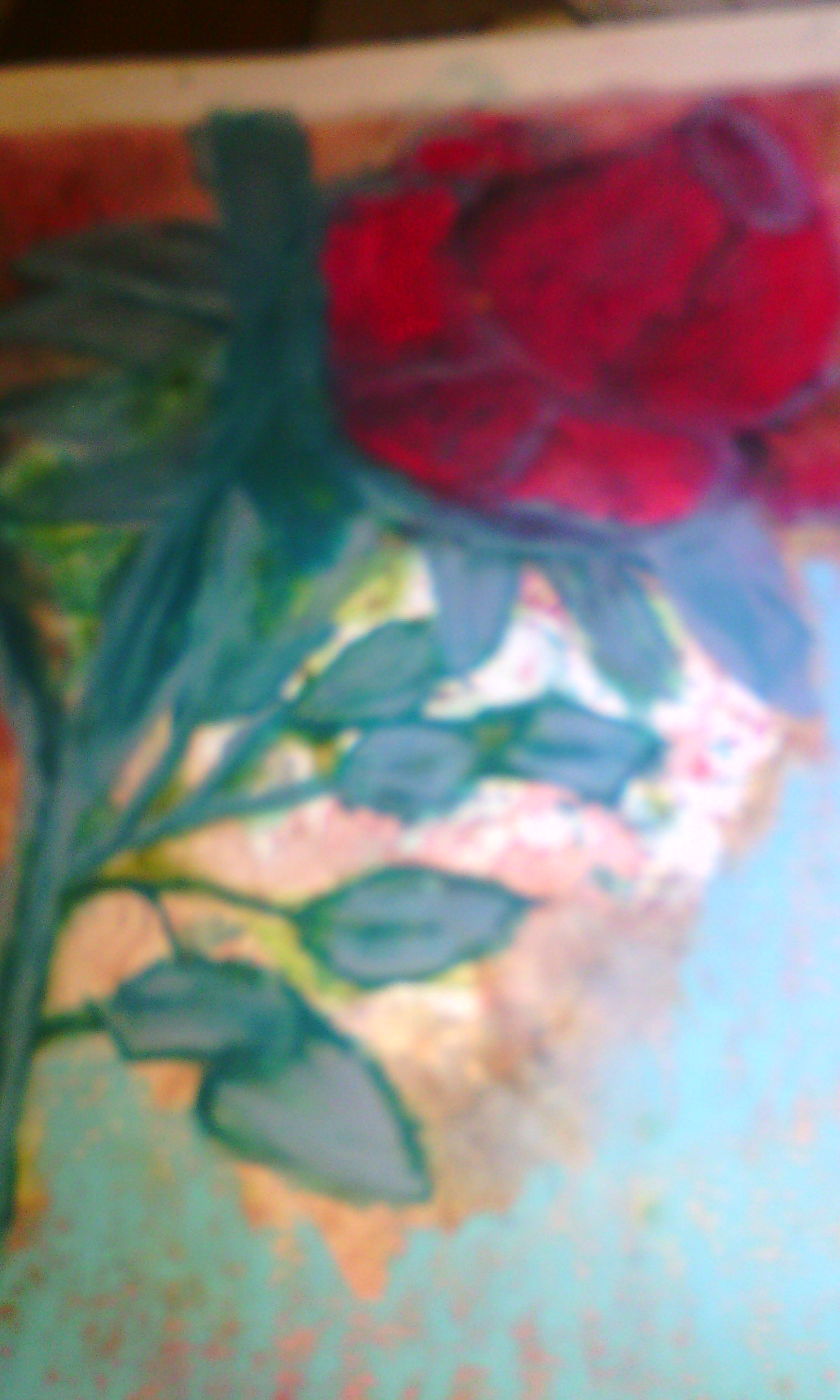 This is a close plan of the rose with the red layer of pastel and water. All you have to do is put water in your paintbrush and pass over the pastel surface.