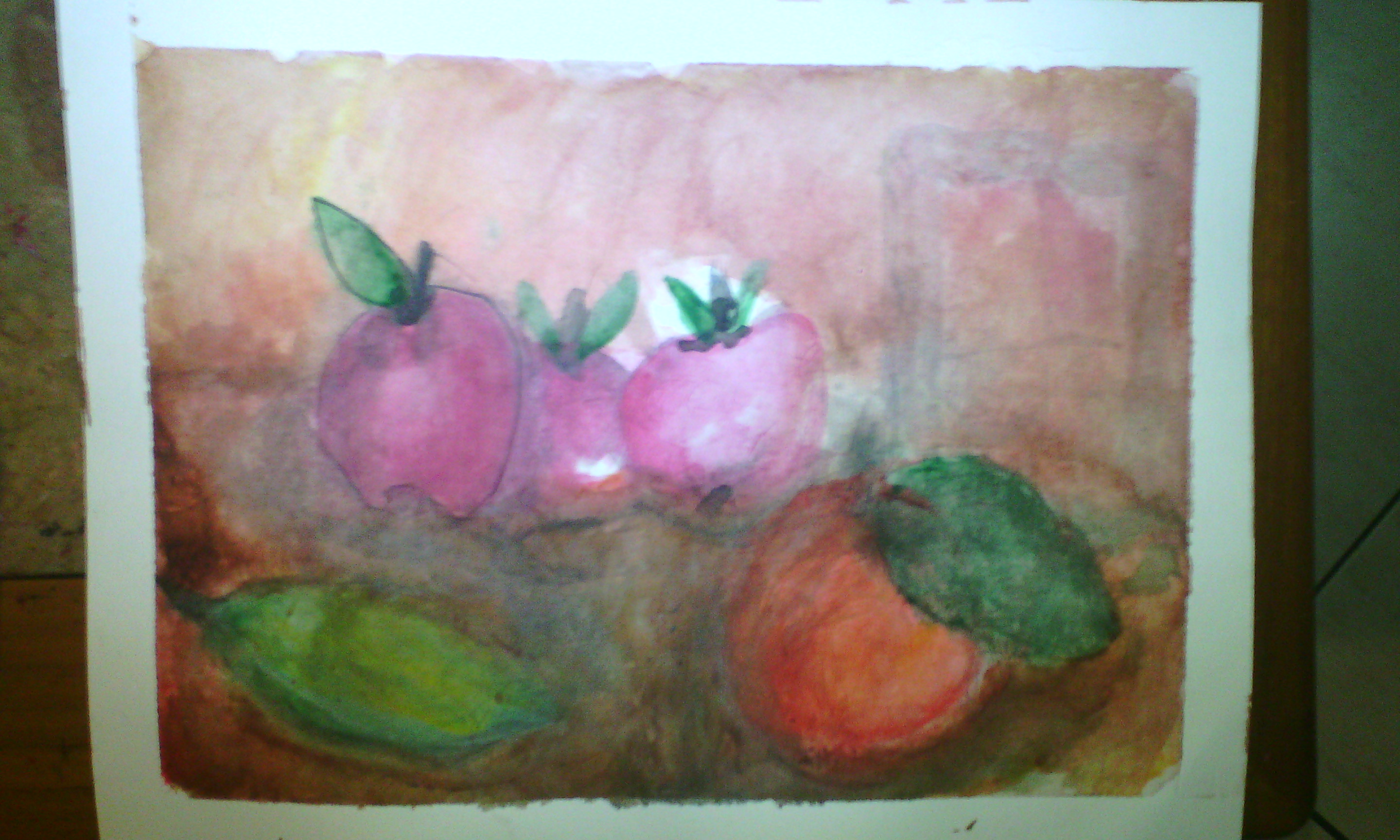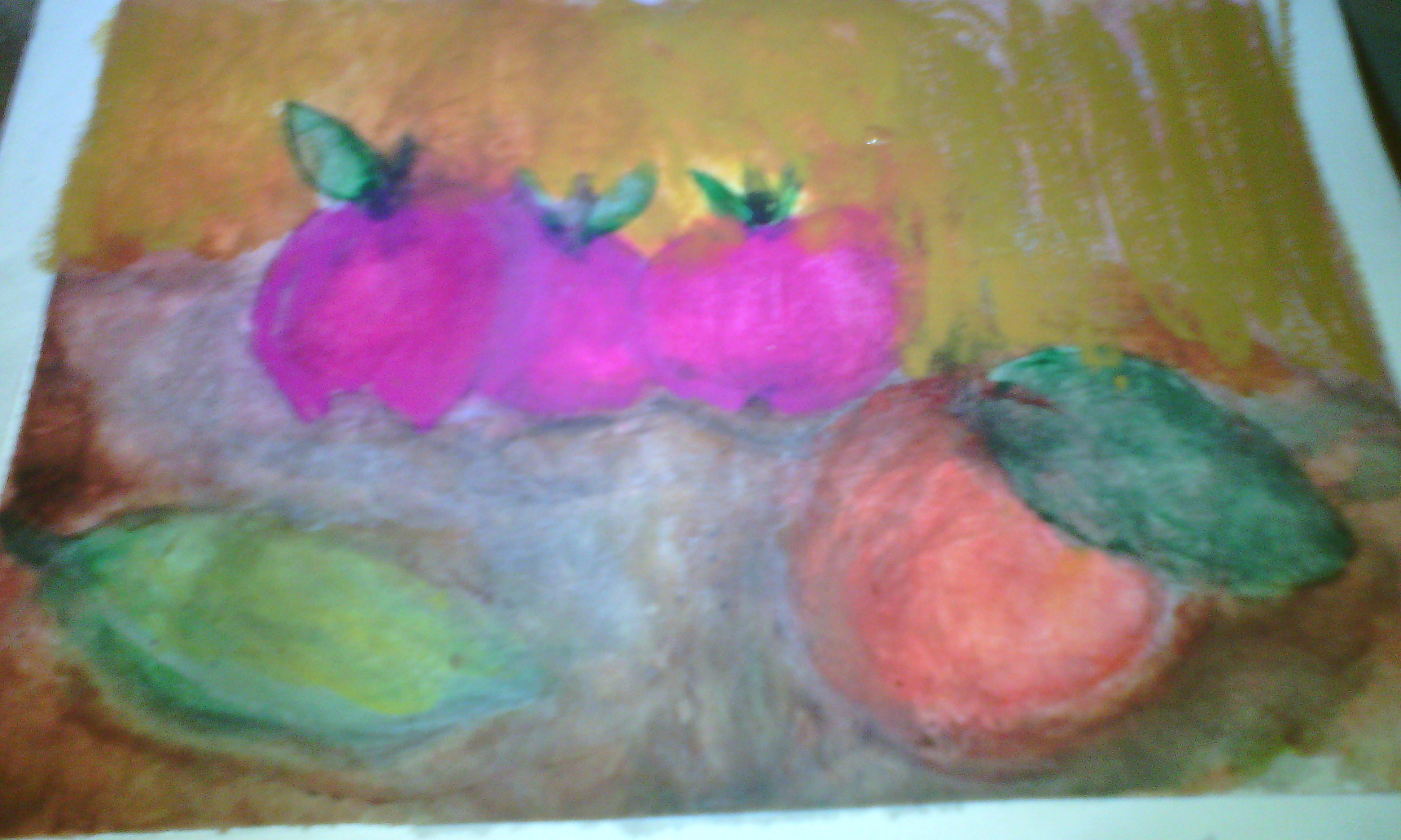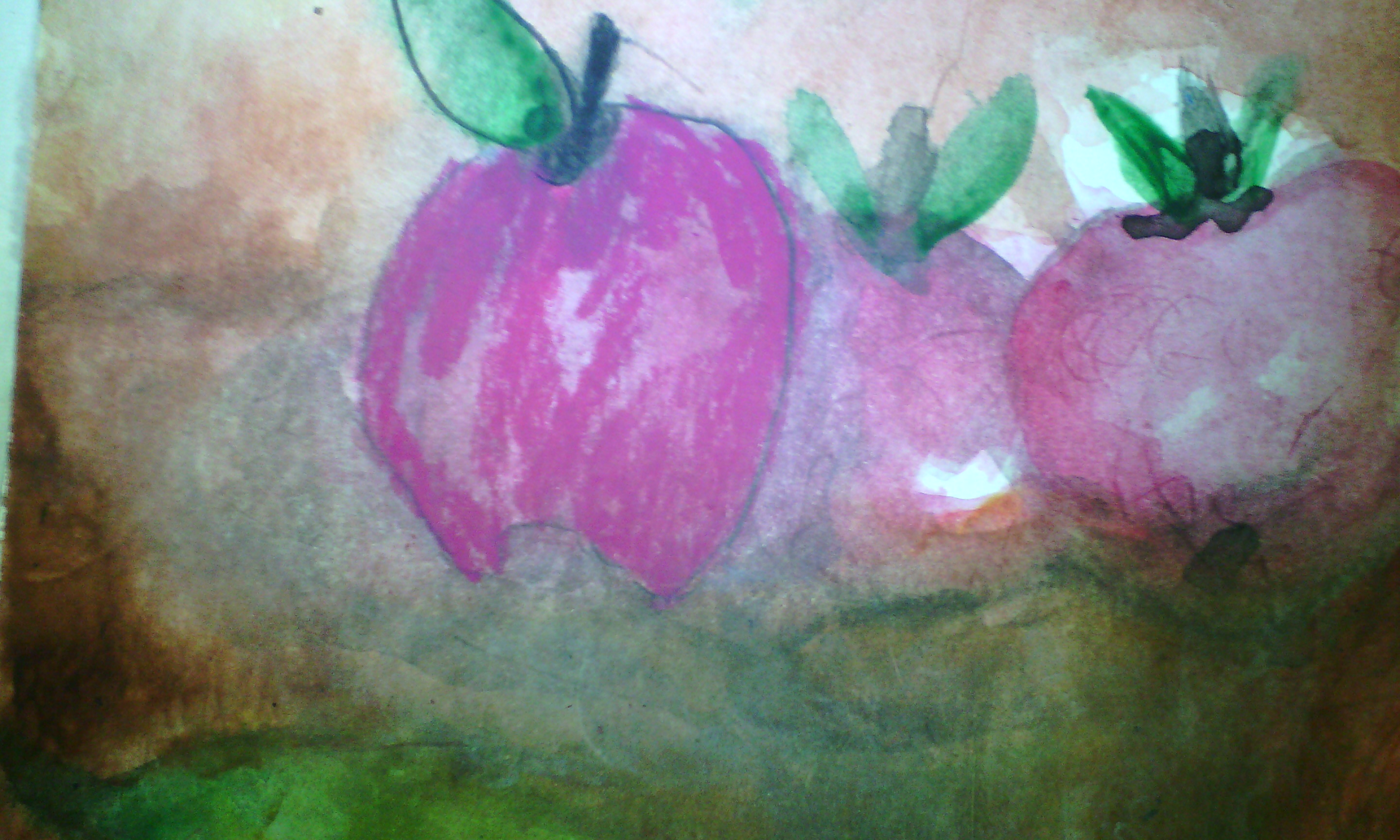 I emphasized the apples so that you can see the effect of water on the pastels.