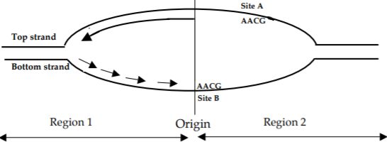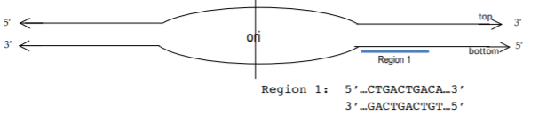 Consider the following origin of replication that is found on a chromosome. The sequence of region 1 is shown.