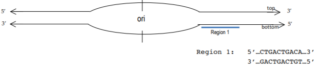 Consider the following origin of replication that is found on a chromosome. The sequence of region 1 is shown below.