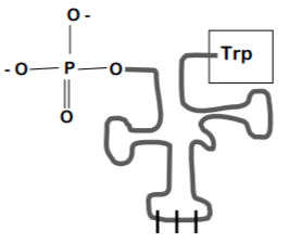 d) Below is a schematic of the molecule that inserts the fourth amino acid (a tryptophan) into the mutant polymerase. A codon chart is found on the final page of the exam.