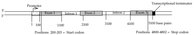 • Two different transcripts are produced from this gene, one is approximately 2000 nucleotides long, the other is approximately 3000 nucleotides long. Explain how two different transcripts can be produced from this gene.