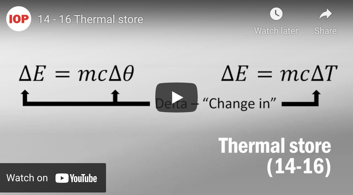 In your home life*, you’ll probably be happy to use all the above phrases. But as good physicists we do not like that ambiguity. Because we do not want to confuse our students, when we are talking about a quantity of energy, we will call it the thermal store of energy. We will try to reserve the word heat for the process where thermal energy is transferred by heating.