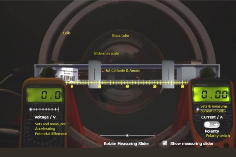 Now repeat the measurements at higher values of the voltage. You can go up in steps of 20 V up to 250 V. You will move the right-hand slider each time to measure the positions.