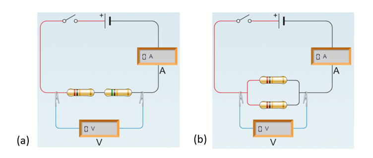 In this lesson you will explore how the arrangement of resistors in an electrical circuit affects the current flowing in that circuit. You will examine this by looking at the way resistors work when arranged in series (Figure 3(a)) and arranged in parallel (Figure 3(b)).