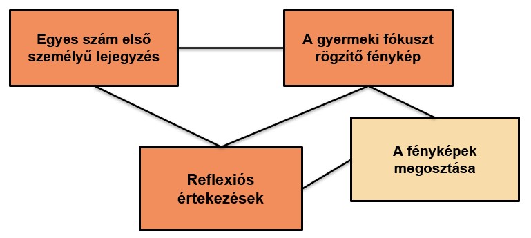Az eredeti kutatási projektekben a képek gyerekekkel való megosztásának módjai kissé eltérő erőforrásokat és megközelítéseket igényeltek. Néha az elkészült fényképeket laptopon, a fényképezőgép hátulján lévő képernyőn, hordozható digitális képernyőn keresztül, vagy egy-egy asztali számítógépén mutatták meg. A gyakorló szakemberek ipadeket, vagy táblagépeket, vagy mobiltelefont is használtak, mert a gyerekek hozzászoktak ahhoz, hogy ilyen berendezésekkel fényképezzék őket. Egy alkalommal az egyik családnak egy pizza étteremben fotóalbumba rendezve mutatták meg a képeket. Ezek a megközelítések mind egyformán érvényesek, és az Ön választása azoktól a gyermekektől és a családoktól függ, akikkel együtt dolgozik, valamint a rendelkezésére álló erőforrásoktól. A cél az, hogy a fényképek könnyen és közvetlenül megoszthatók legyenek a gyermekkel, és a megfigyelt gyermeki tevékenységgel kapcsolatban megőrizzenek némi aktualitást.