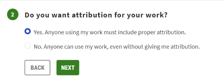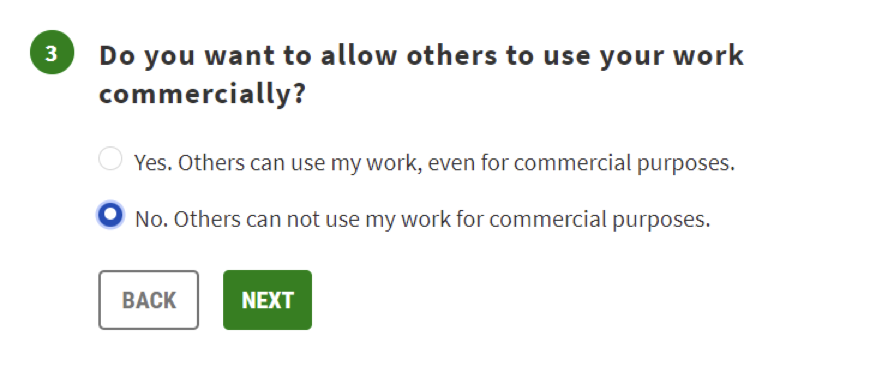 If you want to allow others to use your work commercially, click YES. If not, click NO. Click Next