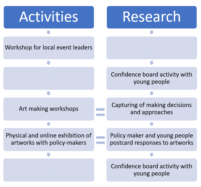 Art for Action consists of a series of activities, which are accompanied by a research process which aims to consider;