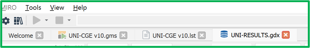 Figure 2. UNI-RESULTS.GDX listed on the menu bar
