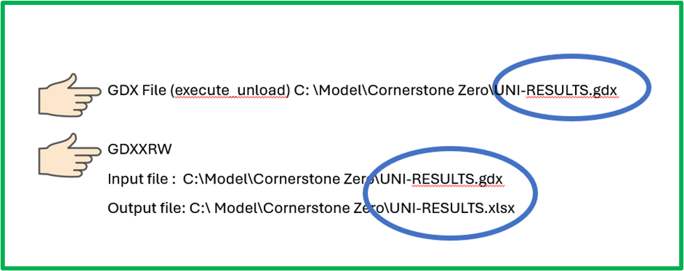 The GAMS code in the UNI-CGE model first unloads selected results into the