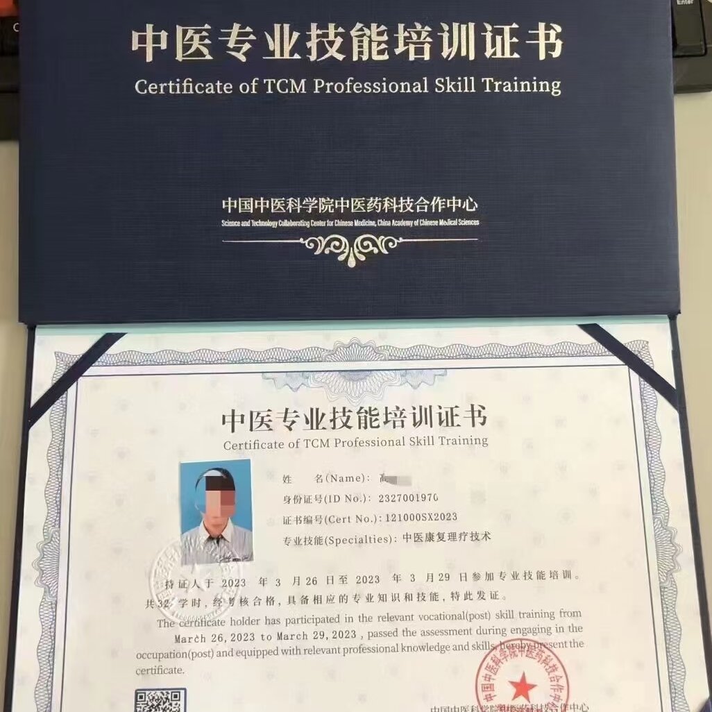 Traditional Chinese Medicine Professional Skills Training: Traditional Chinese Medicine Acupoint Conditioning Technique Certificate from China Academy of Chinese Medical Sciences. Certificate query: www.china-tcm.com