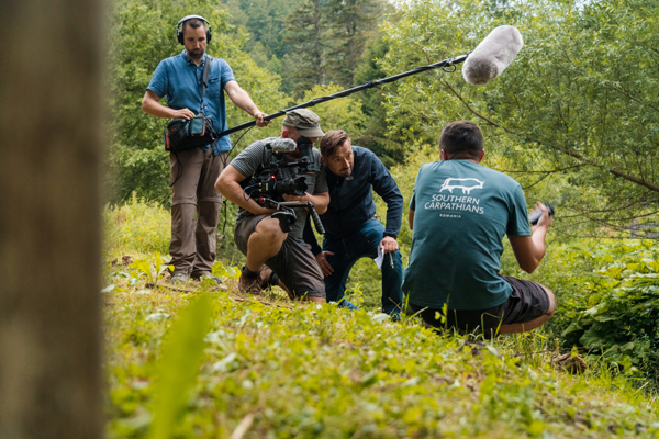 Caption: Ranger Matei having an interview for a german television about the bison transport. Credit: Daniel Mirlea