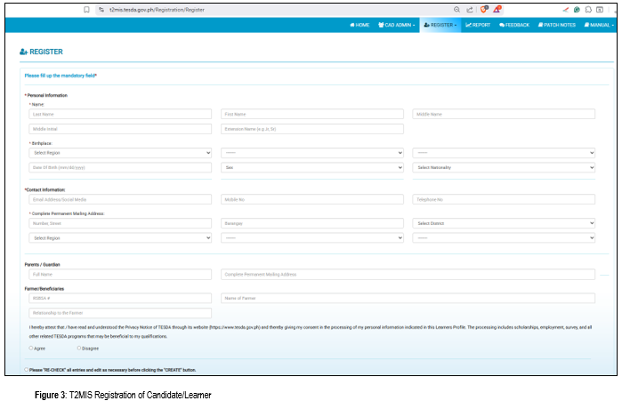 The system maintains a database of the agency’s training, assessment, and certification results. It is integrated with the TESDA website to provide
