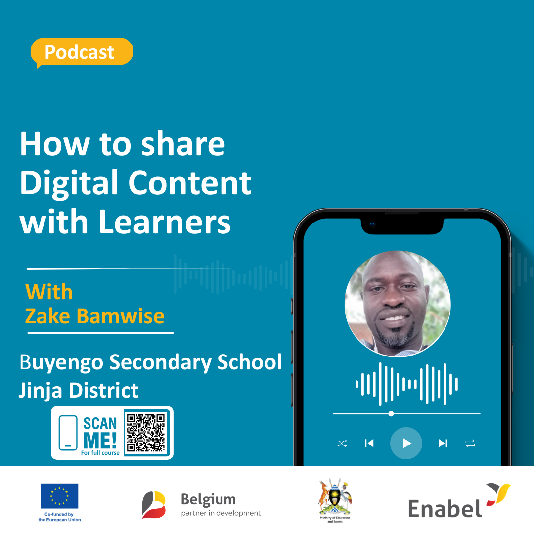 In the following podcast (2.16min), Zake Bamwise, ICT teacher from Buyengo SS in Jinja district shares simple ways to organize and share digital learning materials efficiently. Listeners learn about the use of links, QR codes, bookmarks, and shared folders to keep resources accessible. The podcast stresses consistency in how materials are shared so learners always know where to find what they need.
