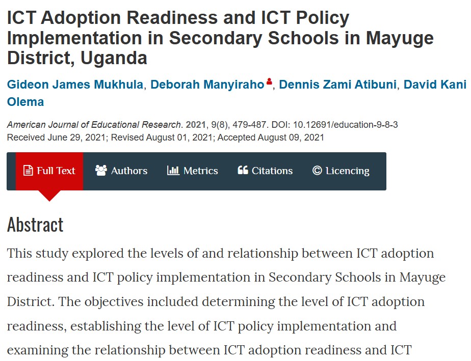 By reading this article by Mukhula, Manyiraho, Atibuni and Olema (2021), teachers will understand that successfully using ICT in schools depends on both readiness and strong leadership support. You will also learn that involving school leaders in ICT planning and policy implementation is key to improving technology adoption and making digital teaching more effective.