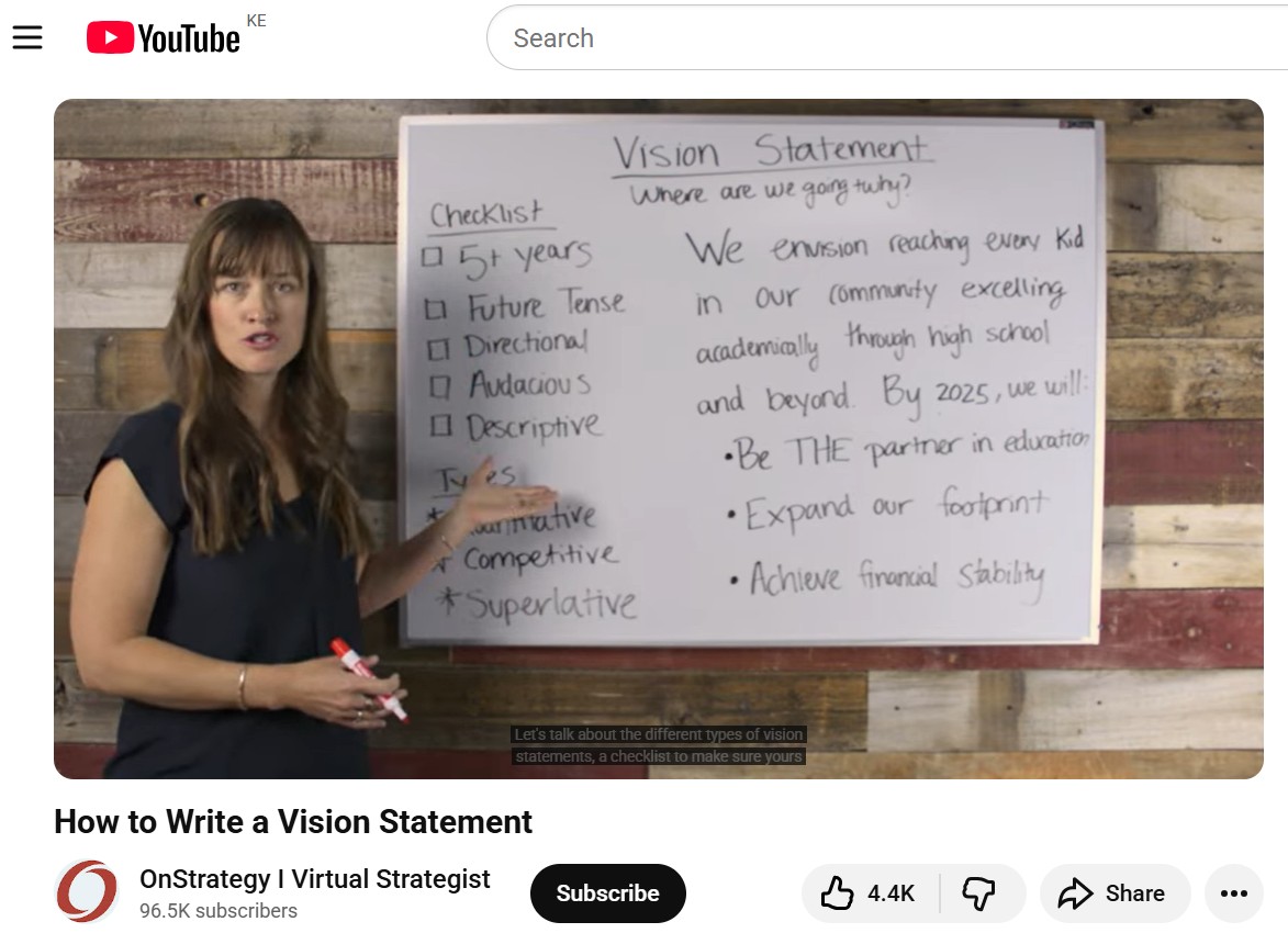 After watching this video (3.47min) by On Strategy / Virtual Strategist, teachers learn how to write a clear and inspiring vision that describes the future they want for their school or classroom. They will also understand why a strong vision is important for leadership, guiding goals, and creating meaningful impact.